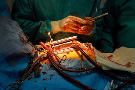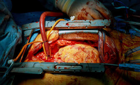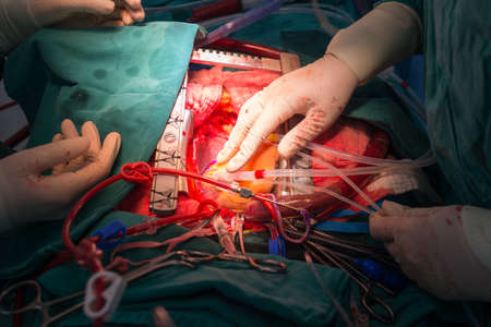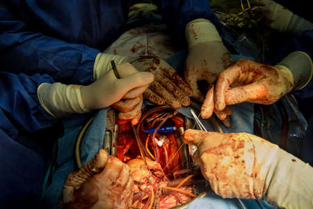The process of cardiac surgery. The heart surgery.
