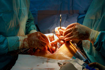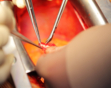 Procedure of coronary artery bypass graft CABG for the operation a heart due to coronary heart disease in an operating room in hospital