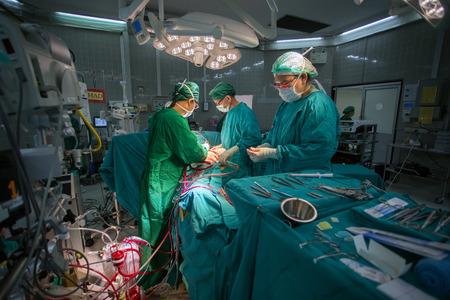 BANGKOK,Thailand-march:31, 2015:The doctor and staff are treating with open heart cardiac bypass surgery in full operation room