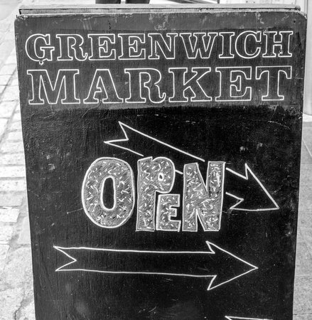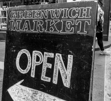 Open sign at Greenwich Market in London Greenwich - LONDON / GREAT BRITAIN - SEPTEMBER 19, 2016