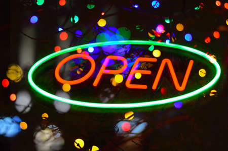 neon open sign in a shop window