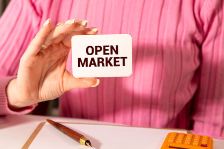 open sign, text open market on black background.
