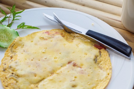 Closeup of egg omelette for breakfast .