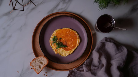 Classic Omelette, Black Surface Table, minimalistic decor