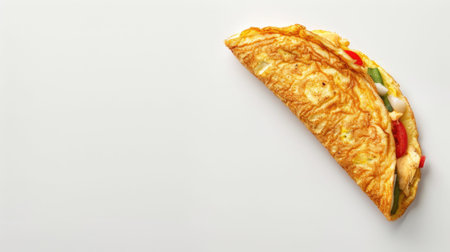 a chicken and cheese omelette on a white background, designed with ample empty space perfect for text placement