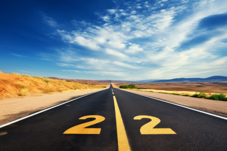 Happy new year, 2025 mark on the road, created with Generative AI technology
