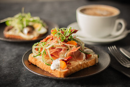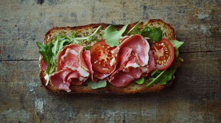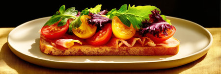 Healthy Italian bruschetta sandwich with fresh ingredients
