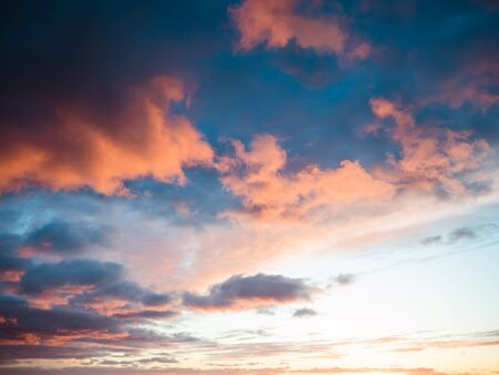 Colorful cloudy sky at sunset. Gradient color. Sky texture. Abstract nature background