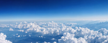 AI Generated. Fluffy white clouds over rich blue sky create soft and serene atmosphere