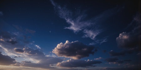 A breathtaking view of a twilight sky filled with vivid colors and interesting cloud formations. This serene dusk scene evokes feelings of calmness and wonderment.