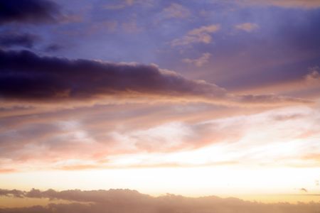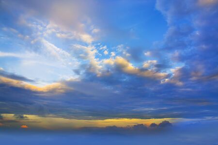 Beautiful sunset above the clouds. Colorful cloudscape. Nature background