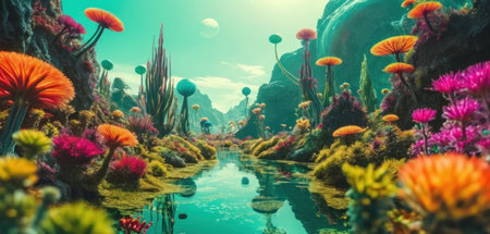 A neural network connected to plant life, symbolizing the intersection of technology and nature. Panorama with copy space