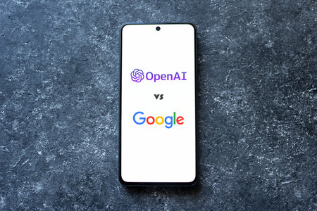 Screen with ChatGPT chat with AI or artificial intelligence. Man search for information using artificial intelligence chatbot developed by OpenAI. Kyiv, Ukraine - February 18, 2023