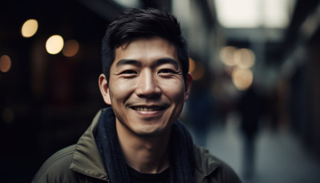 The Charm of Youth: Stunning Asian Man's Close-Up Portrait. Generative AI