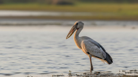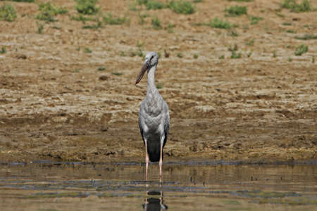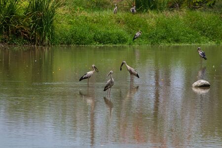 Shot of a Open bill along with other migratory birds at the Bhigwan bird sanctuary