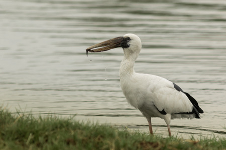 Asian Openbill Stork - Anastomus oscitans, beautiful large bird from Asian fresh waters, Sri Lanka.