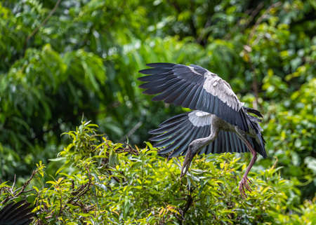 Flying Tropical bird heron.The national Park of Sri Lanka