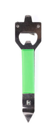 old can opener shot on a red background with a place for an inscription. bottle opener on red background
