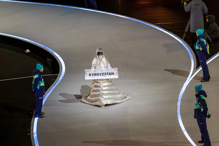 MILANO, Lombardy ITA - February 06, 2026: Team Kyrgyzstan are introduced as San Siro Olympic Stadium plays host to the Opening Ceremonies for the Milano Cortina 2026 Olympic Winter Games in Milano, Italy.