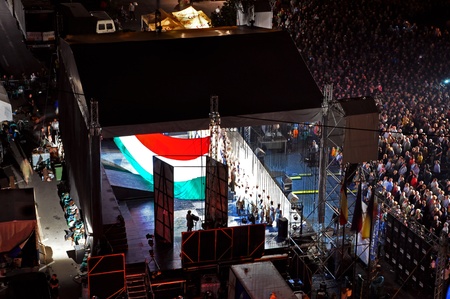 CLUJ - AUG 25 Rock opera Stephen the king performed on the Main Square of Cluj during the Hungarian Days of the City, in front of almost 50 000 fans View from above Aug 25, 2013 in Cluj, Romania