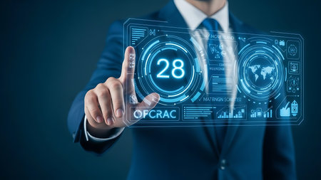 A person presenting a visual projection of a digital number twenty at a meeting