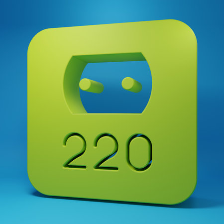 Green Electrical outlet icon isolated on blue background. Power socket Rosette symbol. Minimalism concept. 3D render illustration.