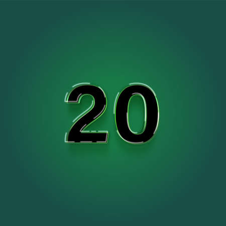 20 number on a green background with shadow - 3D illustration of numbers