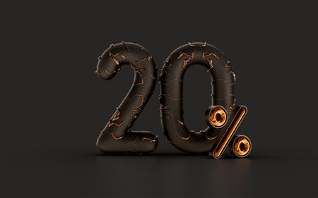 20 percent discount sale banner gold effect on dark background 3d render concept for black Friday