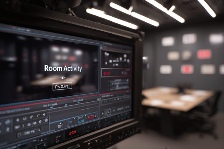 Clean room activity feed is prominently displayed on a monitor, highlighting digital elements in a modern workspace, emphasizing technology and organization