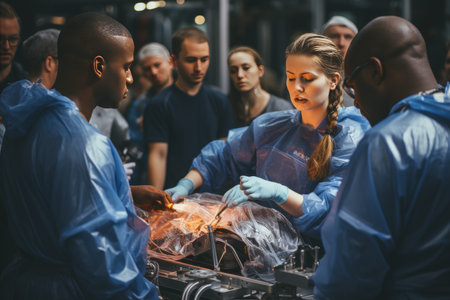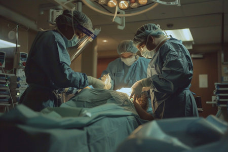 Medical professionals collaborated in a focused environment, strategizing during a significant surgical procedure in a hospital setting.