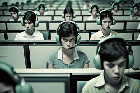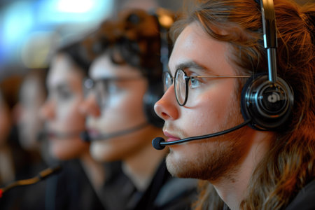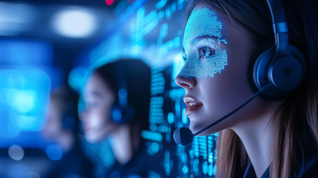 Call-center operator in action: providing exceptional customer service, wearing a headset, and managing inquiries with efficiency and professionalism