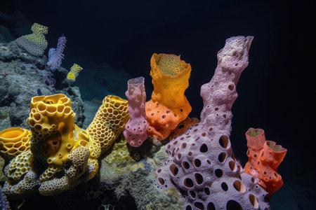 The diverse shapes and colors of deep-sea sponges in their natural habitat