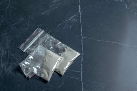 illegal transport of drugs. A police officer finds drugs during the search of drug dealers. Law and police concept.