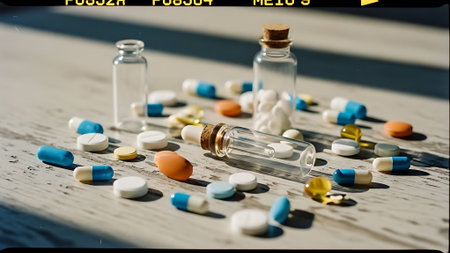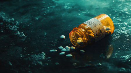 Pills spilling out of a tipped over pill bottle