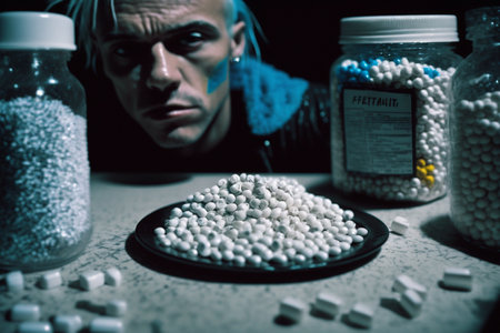 Pills, prohibited substances, addiction, say no to drugs. Drug addiction and substance concept.