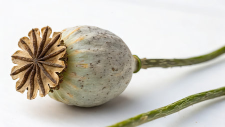 Poppy seed capsule on a white background