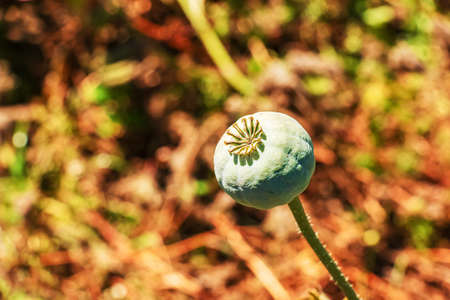 Opium poppy flower seeds capsule close up