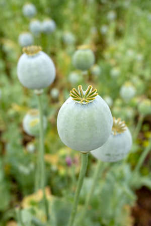 opium, poppy capsule. Agriculture of poppy plant. pharmaceutical industrial plant. main ingredient of morphine