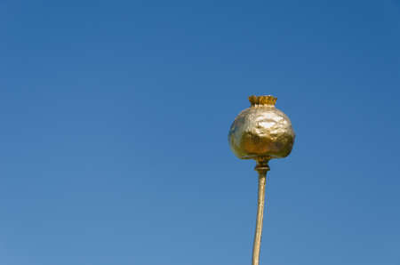gold paint sprayed poppy on blue sky background