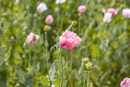Close-up of pink opium poppy blossoms, also called breadseed poppies