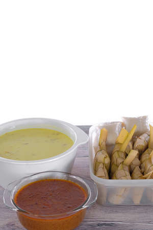 Lontong-Traditional Malaysian and Indonesian food on wooden table .