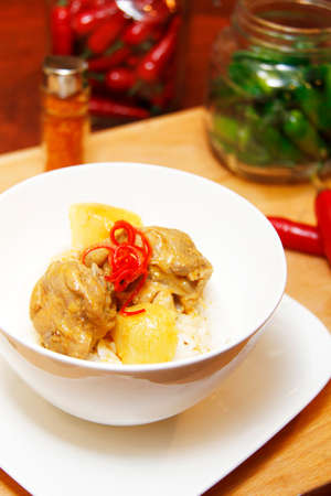 Massaman chicken curry Thai authentic style in bowl. Thai Curry. Close up