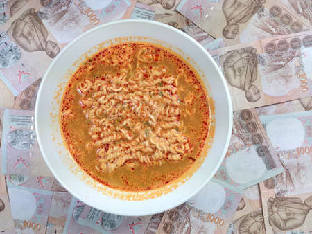 Curried Noodle Soup (Khao soi) with spicy coconut milk, Thailand food