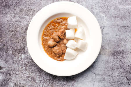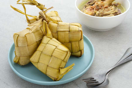 Opor Ayam with Ketupat, Indonesian traditional food. Opor made from chicken cooked with coconut milk and spices.