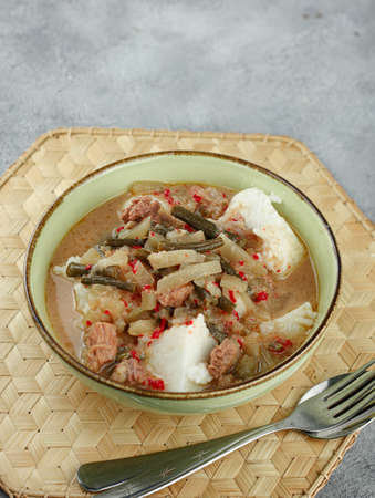 Sayur lodeh is an Indonesian vegetable soup prepared from vegetables in coconut milk popular in Indonesia. The origin of the dish can be traced to the Javanese people's tradition of Java.