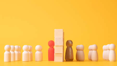 Wooden figure standing with team to leader and teamwork. Concept of business for leader team, successful