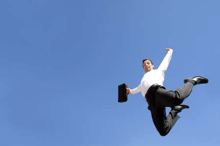 Businessman jumping in the air