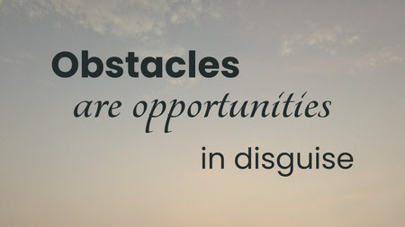 Obstacles are opportunities in disguise. A motivational quote reframing challenges as hidden chances for growth, resilience, and success.