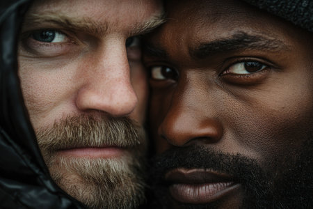 close up of a african and caucasian mans