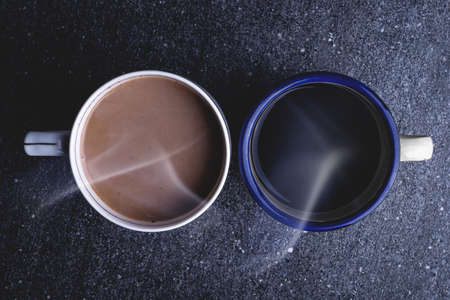 Cup of hot coffee with different taste on the table